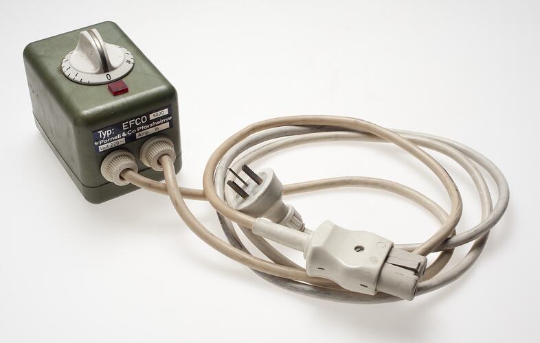 Power cord for a small Kiln made by Fornell and Company, used by Martha Ash, circa 1996. Martha Ash was born in Poland in 1920 and lost all her family in the Holocaust. She came to Australia in 1949 where she studied ceramics, sculpture silver smithing, enamelling and glass mosaics. She usually worked without sketches or drawings and her work often reflected the images, colours and experiences of her environment and past. She died in September 1996.