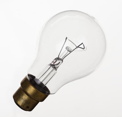 Light bulb which forms part of a set of lighting equipment, which was purchased in Melbourne around 1978 by Dimitri Katsoulis. This equipment comprised the stage lighting for performances of the Greek Shadow Puppet Theatre and was used by Dimitri in his performances in Victoria and in South Australia from 1978 to 1991. In order to perform shadow puppet theatre, it is essential to have an artificial light source.