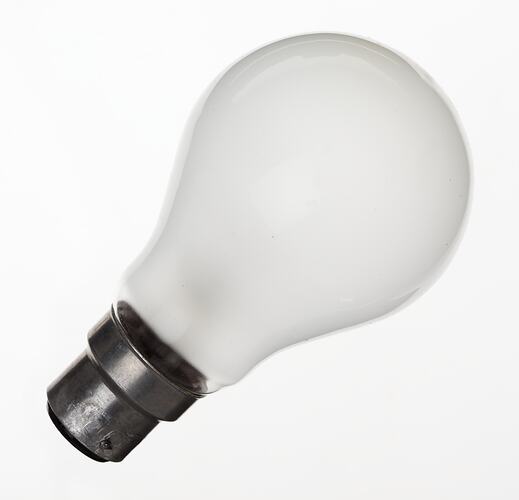 Light bulb which forms part of a set of lighting equipment, which was purchased in Melbourne around 1978 by Dimitri Katsoulis. This equipment comprised the stage lighting for performances of the Greek Shadow Puppet Theatre and was used by Dimitri in his performances in Victoria and in South Australia from 1978 to 1991. In order to perform shadow puppet theatre, it is essential to have an artificial light source.