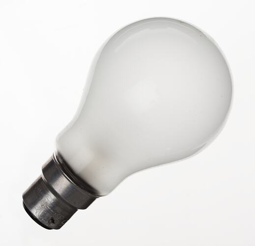 Light bulb which forms part of a set of lighting equipment, which was purchased in Melbourne around 1978 by Dimitri Katsoulis. This equipment comprised the stage lighting for performances of the Greek Shadow Puppet Theatre and was used by Dimitri in his performances in Victoria and in South Australia from 1978 to 1991. In order to perform shadow puppet theatre, it is essential to have an artificial light source.