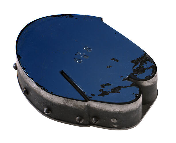 Press knife for cutting out gloves used at Simpson's Gloves Pty Ltd, Richmond. Plate for thumb pieces.