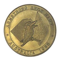 Obverse: AUSTRALIA'S TRICENTENARY 1988 WILLIAM DAMPIER 1688 HAFNER Reverse: ARMSTRONG SHOE MART AUSTRALIA 1988