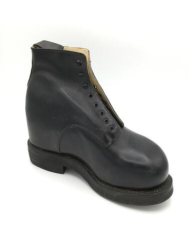 The Barfoot collection is significant for two reasons. Firstly it offers a different perspective to bootmaking - that of specialist surgical bootmaking, which addresses physical abnormalities of the feet or legs. Each shoe or boot was designed and made specifically for each customer, requiring innovative thinking and craftmanship by the brothers.This collection illustrates the particular nature of surgical bootmaking through pattern books that show the measurements and requirements of customers; some patterns; a pair of silicone & sawdust custom lasts and semi completed shoes, and 5 pairs of wooden lasts. [the complete collection of customer lasts has not survived] It also includes a few specialist hand tools typically not used by general bootmakers.