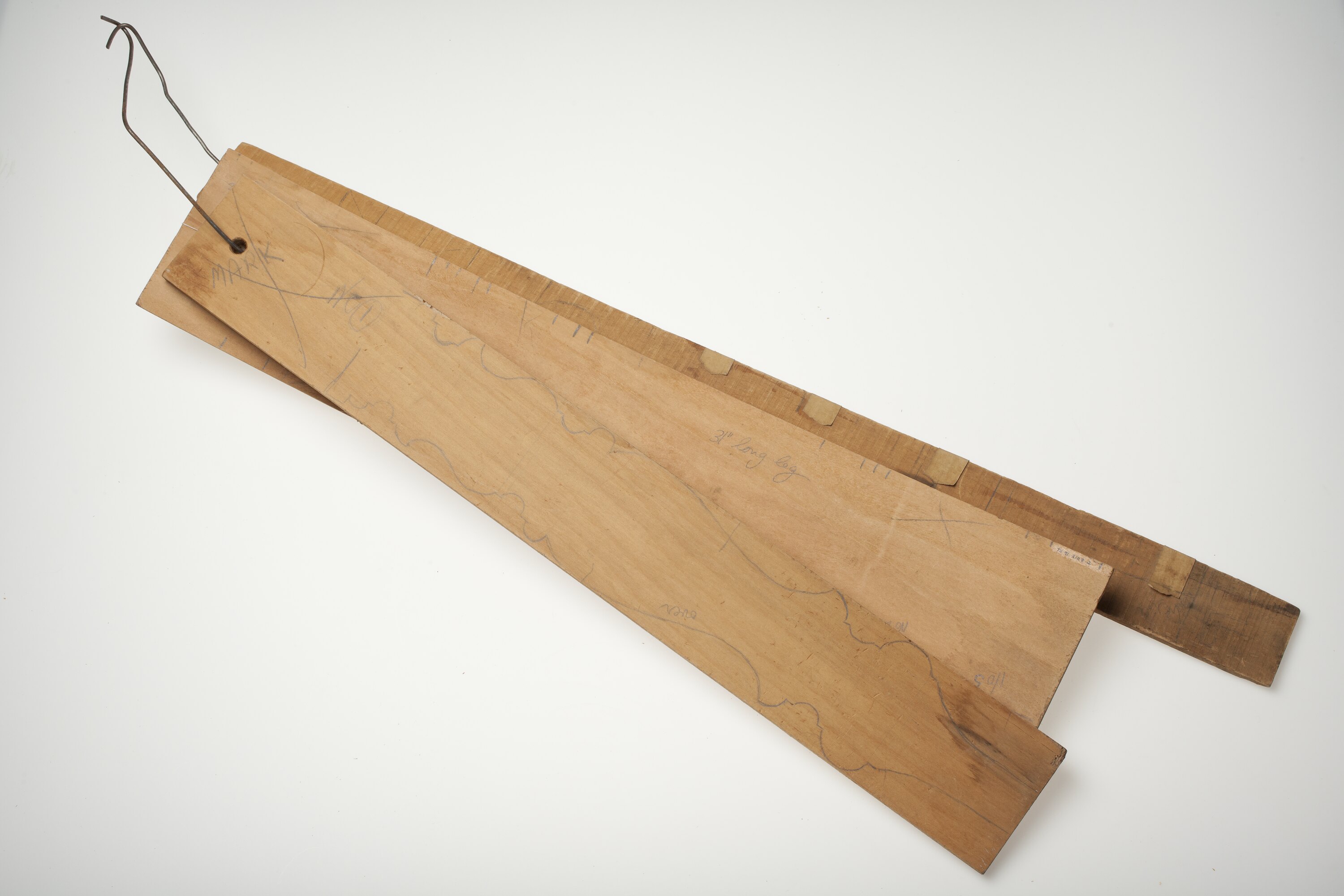 Woodturning templates created by Adolph Bruhn & Son, circa 1970 - 1990. They were found hanging from the wall in Area A at Adolph Bruhn & Son's Wood Turners Shop, 283 Coventry Street, South Melbourne. The business was established by Adolph Bruhn circa 1893 in Little Collins Street, Melbourne. Upon his death in 1919 it was then operated by Adolph's son Sophus Christopher Bruhn. Upon Sophus's death in 1959 his son Sophus Walter Bruhn took over the business. In 1970 Sophus reduced the scale of the business and relocated to South Melbourne. The business closed upon Sophus's death in January 1990.