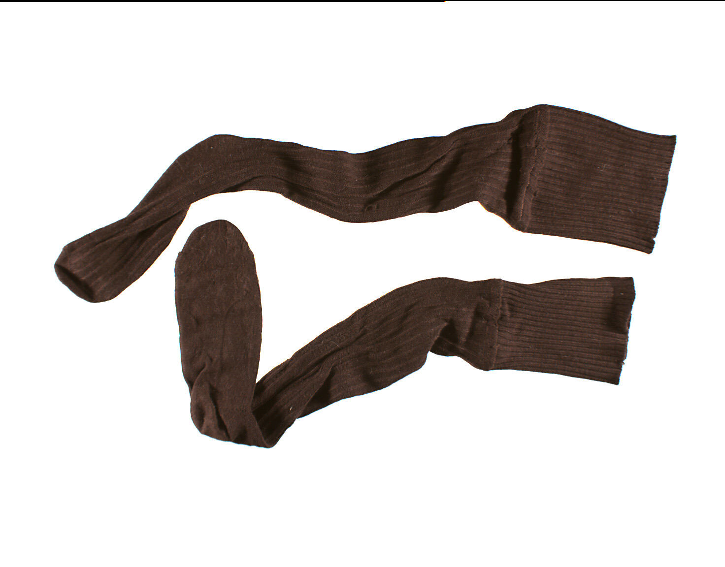 Pair of brown woollen socks used in Antarctica, circa 1954 - 1966. These long socks were the standard light weight socks. They were replaced by the shorter ski sock as the men wore long pyjama type undergarments.