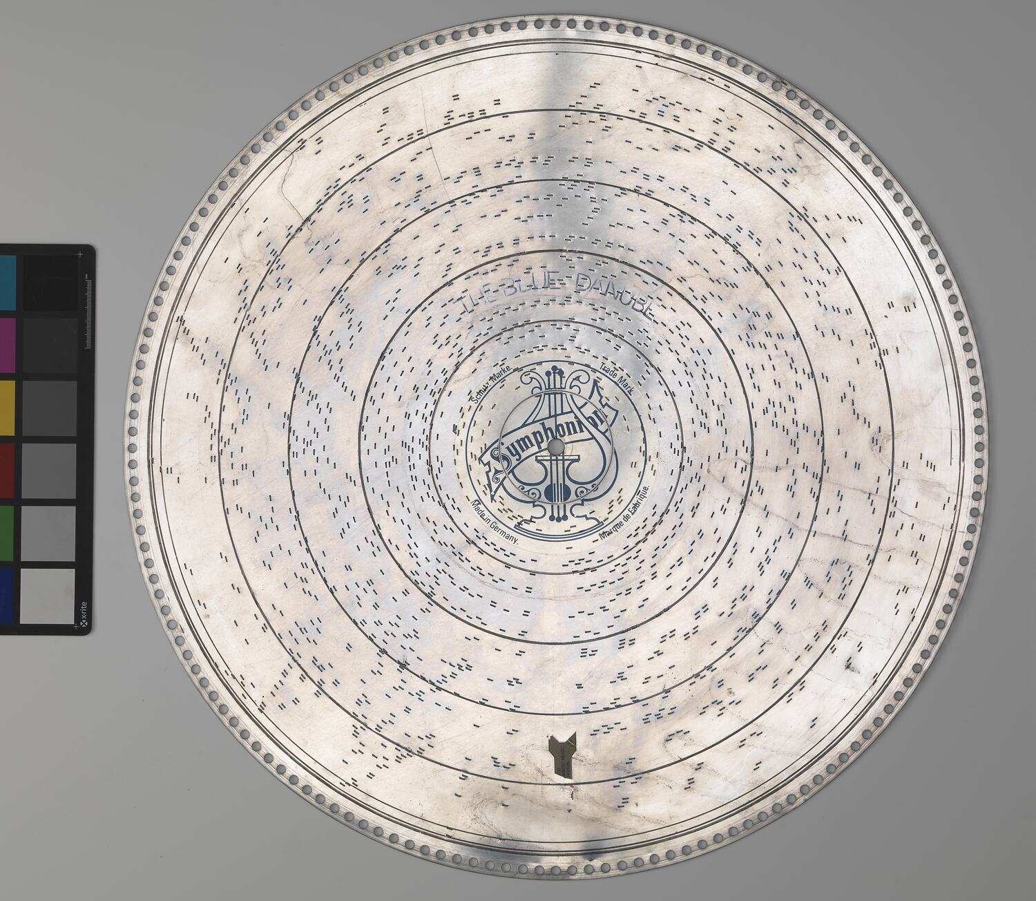 Music disc for a symphonion, a mechanical music box. Tune played is 'The Blue Danube'.