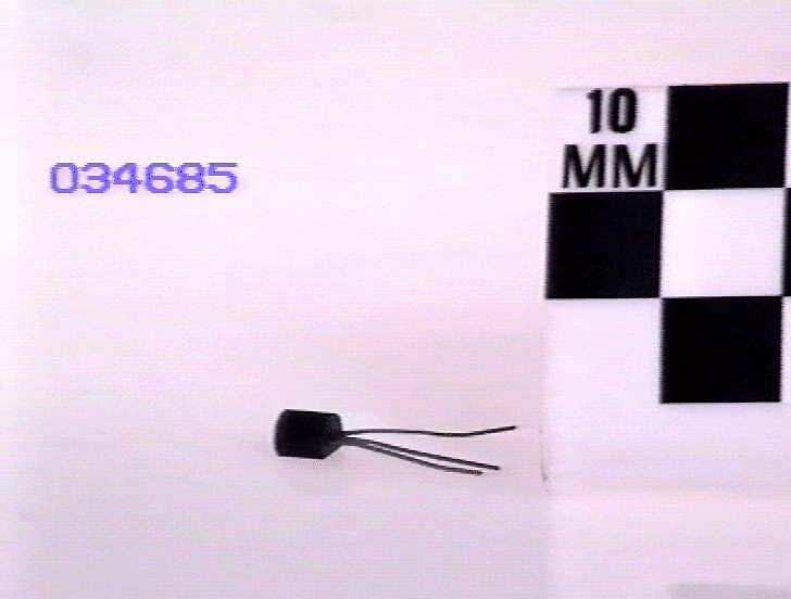 Small plastic package, three wires protruding from base.
