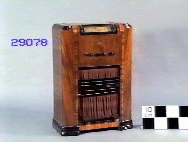 Battery operated console receiver, 1938. The set was manufactured by Amalgamated Wireless (Australasia) Ltd., who also donated it to the Museum.