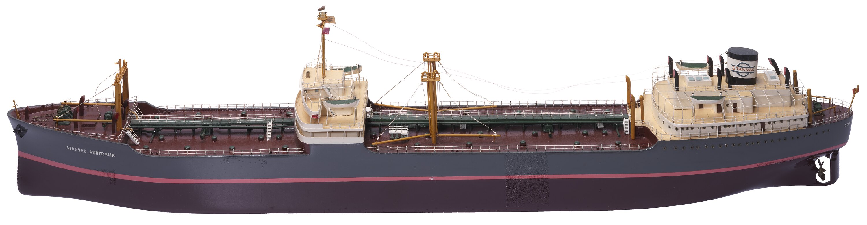 The 'Stanvac Australia' (17,297 GRT) was built by John Brown & Co. at Clydebank, Scotland in 1954-55 for the Standard-Vacuum Transportation Co. Ltd. It was launched on 24 May 1955. This ship was the first tanker to carry crude oil for the Altona refinery in Melbourne. In 1963 it was renamed 'Esso Australia' and renamed again in 1975 as 'Petrola 22' and was scrapped in 1978.