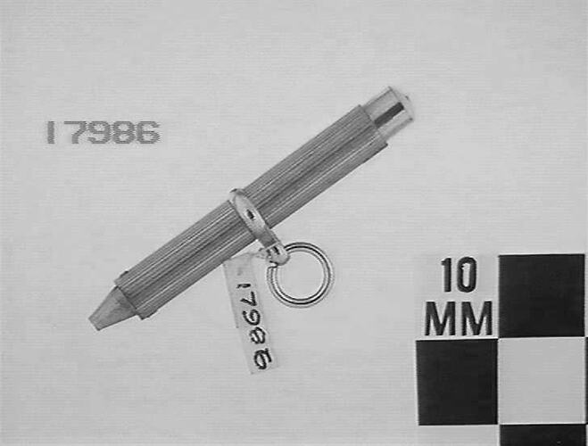 Birch's key, cylindrical, fluted. Adjustable to fit different sized winding arbors.