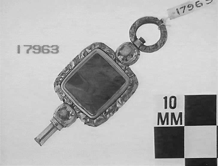 Gilt, chased square body set with fawn coloured agate.