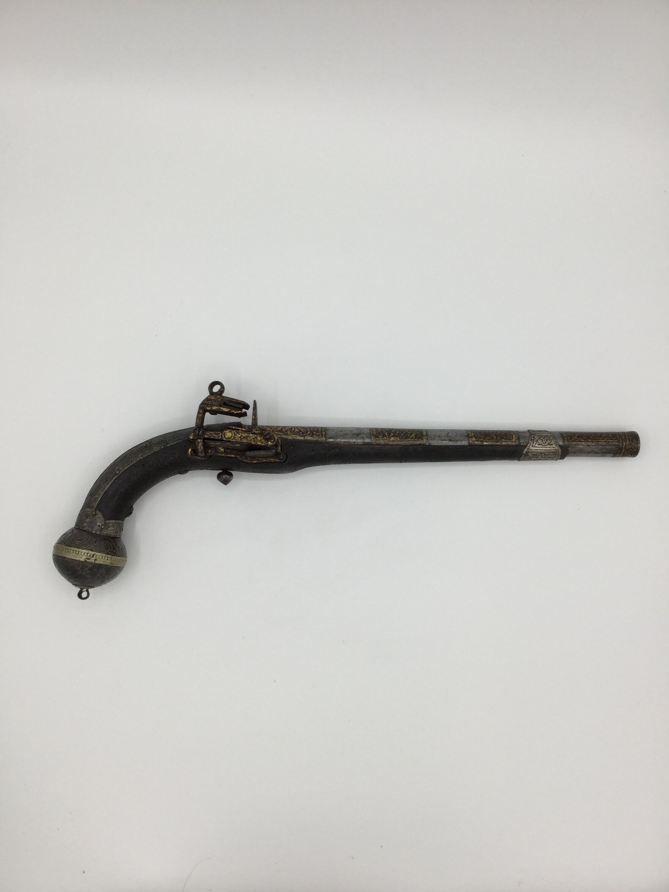Flintlock pistol. Described formerly as Circassian, late 17th century, though this attribution is perhaps too specific unless supported by additional material, and a more generous description would attribute to the Caucasus region and stretching as far down as Albania.
