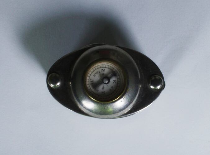Pocket compass with folding magnifying glass and sovereign case. Used on military service by Lieutenant Frederick Gladstone Wilson, 13the Battalion AIF, 1914-1915.