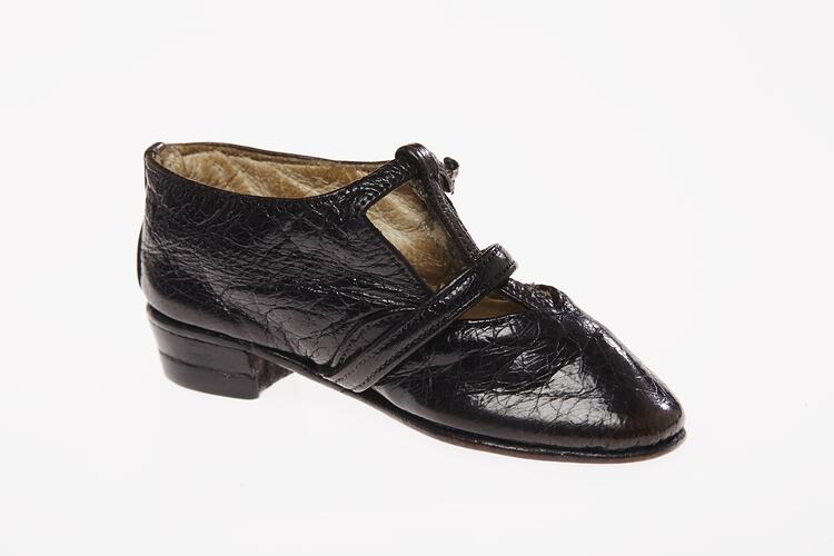 The donor worked in the shoe trade for many years at Yates & Co boot and shoe Factory in Clifton Hill, so it is supposed that this shoe was made there. Factories such as Yates & Co had a tradition of making examples of their shoes and boots in miniature, to display the craftsmanship of their workforce.