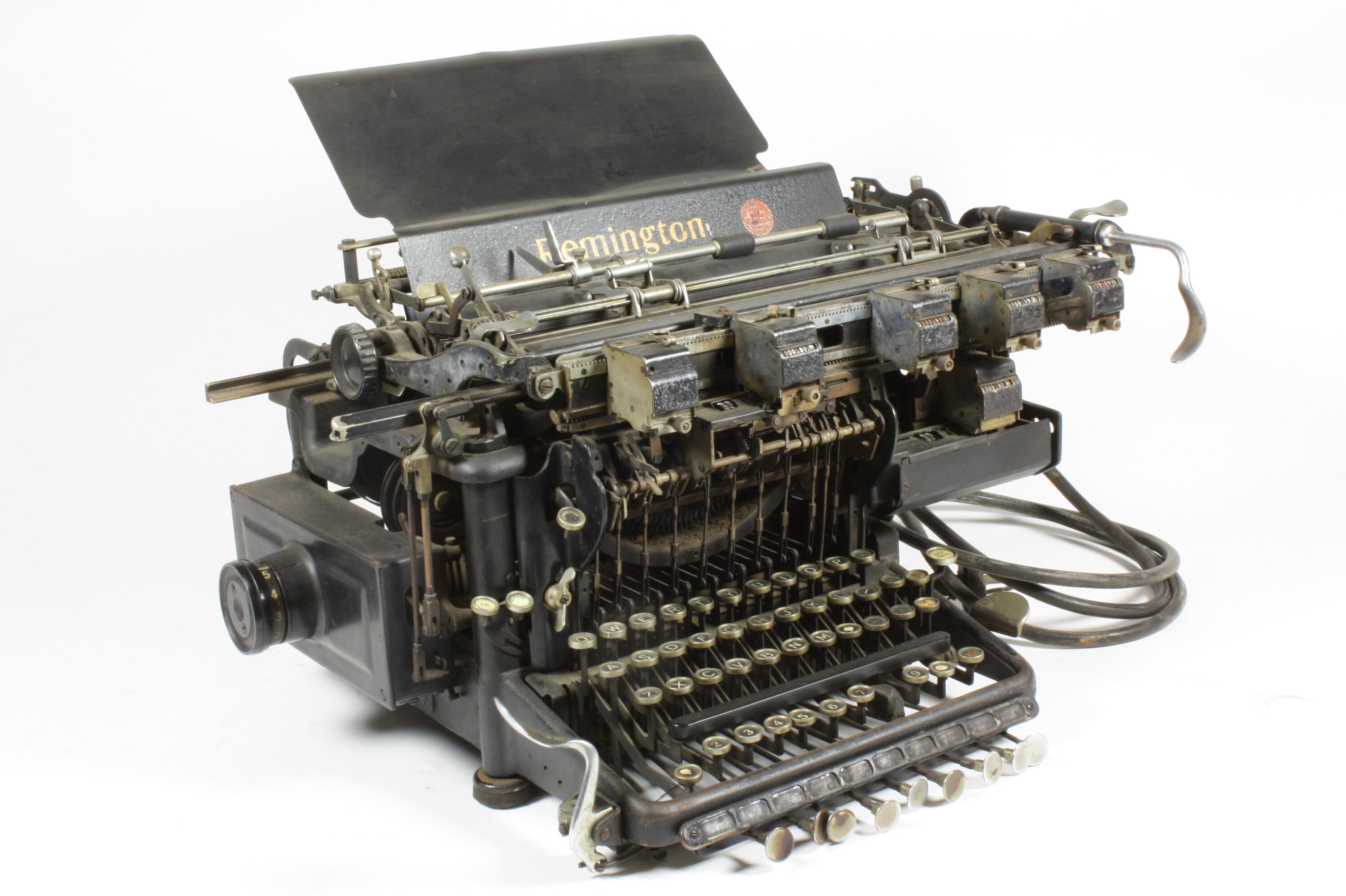Typewriter and adding machine manufactured by the Remington Company in the U.S.A. This machine was developed from a standard typewriter by the addition of registers and extra keys to provide an adding machine function. It was designed to be used with ledger papers.