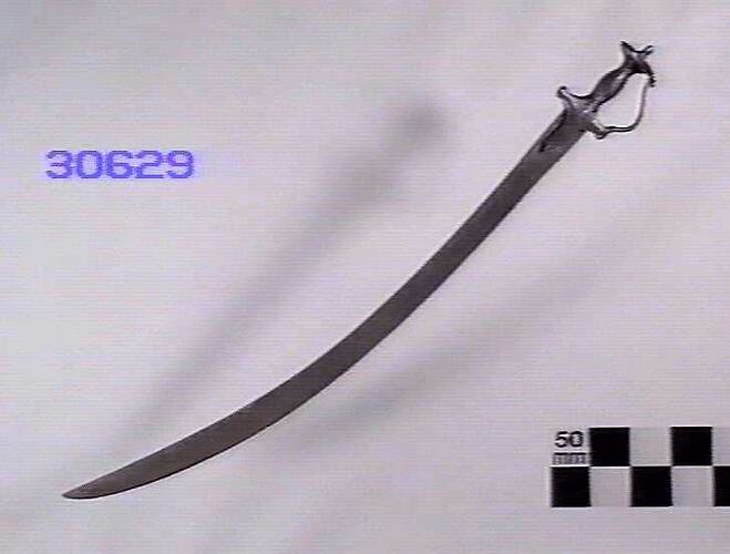 One of a collection of weapons seized from mutineers during the Indian Mutiny (1857-1859), and subsequently donated to the Melbourne Public Library in 1860 by Earl Charles Canning, Governor-General of India.