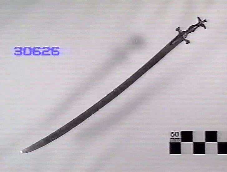 Curved sabre type blade 805 mm long, with groove and light fuller each side.