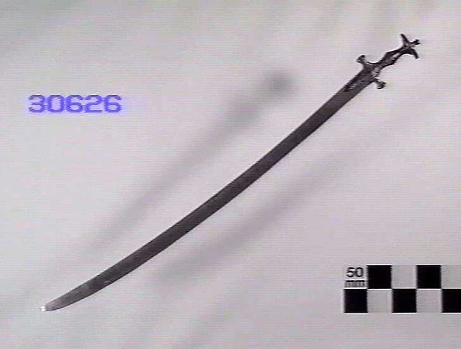 One of a collection of weapons seized from mutineers during the Indian Mutiny (1857-1859), and subsequently donated to the Melbourne Public Library in 1860 by Earl Charles Canning, Governor-General of India.
