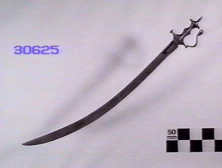 Curved sabre type blade 742 mm long, no fullers.