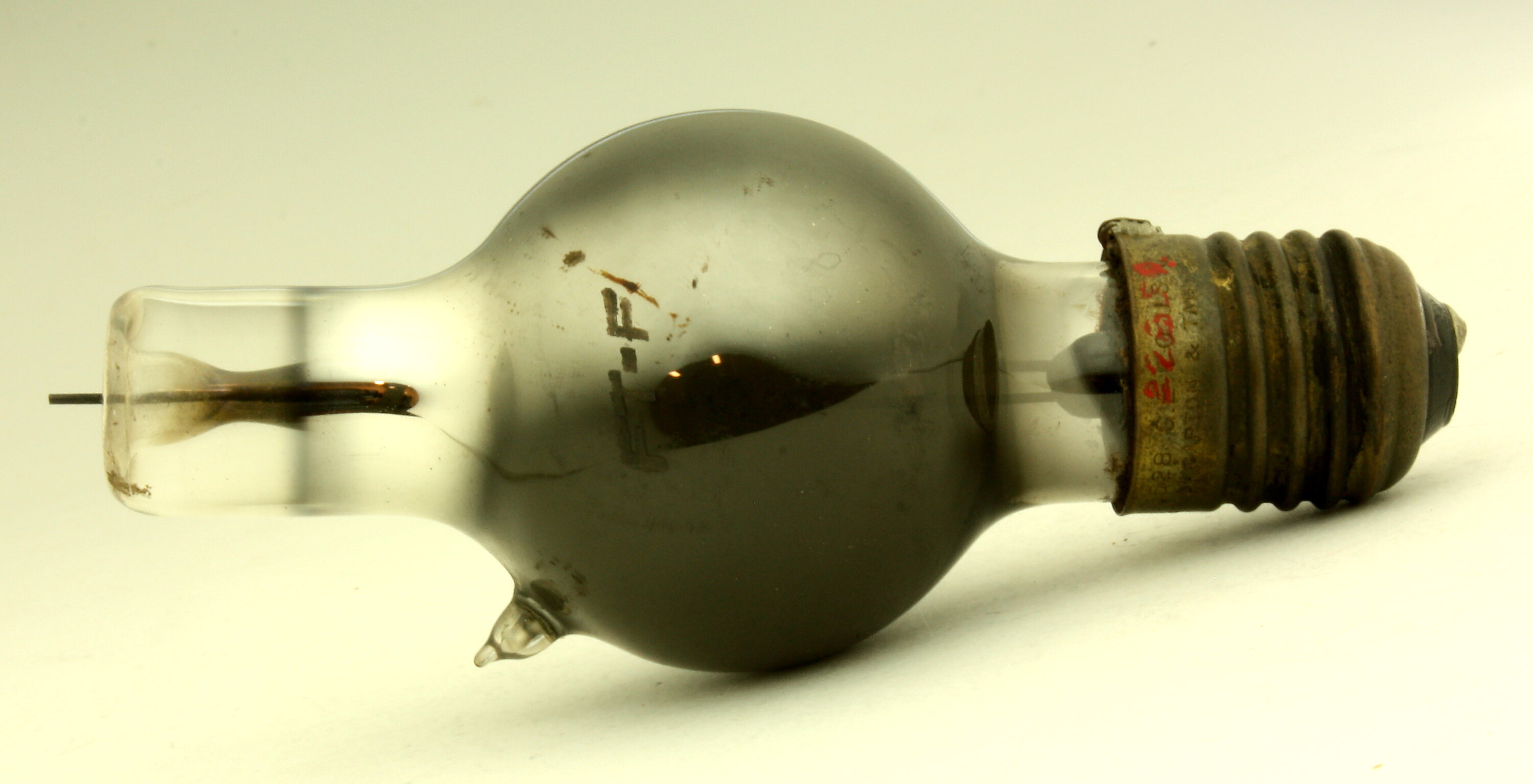 A Tungar Bulb, manufactured by General Electric. U. S. A., introduced 1917 and used mainly during 1920s and still in use in the 1950s.