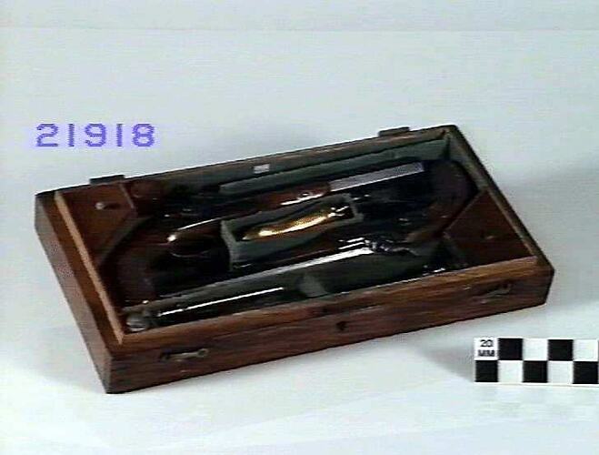 Cased pair of percussion duelling pistols, Cal. .659 in. for Westley Richards barrels and .469 in. for continental duelling barrels. Made by Westley Richards, London.
