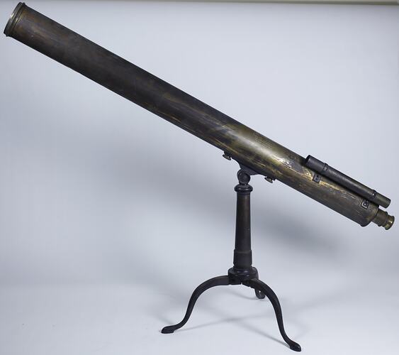 Inscribed on side of tube: 'Presented to the Rev. W. H. Kelly, S.J. / By the members of the H.A.C.B.S. / Albury St. Patrick's Branch No. 3 / in grateful acknowledgment of / Valued services to the Society / November 1873' Inscribed on end of tube near eyepiece: 'T. GAUNT OPTICIAN ROYAL ARCADE MELBOURNE'