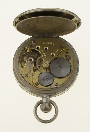 Pocket watch with nickel plated brass case, Omega, no 9962577, circa 1940.