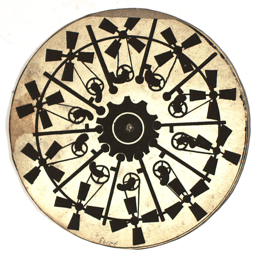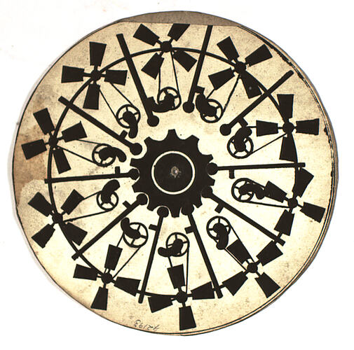 These phenakistoscope discs are part of the Francis Collection of pre-cinematic apparatus and ephemera, acquired by the Australian and Victorian Governments in 1975. David Francis was the curator of the National Film and Sound Archive of the British Film Institute as well as being a co-founder of the Museum of the Moving Image in London, which was operational between 1988 and 1999.