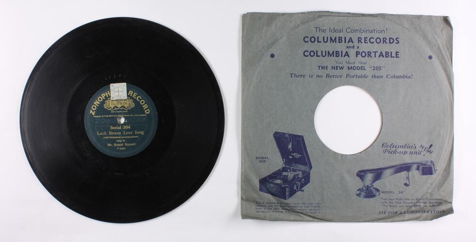 TYPE: ZONOPHONE. CONTENTS: "BROOM LOVE SONG" AND "MARCH OF THE CAMERON MEN", PERFORMED BY BURNETT- LOCH. COMPANY: TYPE DETAILS: COMMENTS: CAT. NO. 304. FORMERLY REGISTERED AT ST 028526. THAT NUMBER NOW CANCELLED.