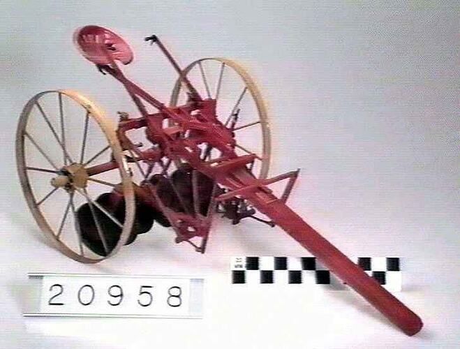 Model of disc cultivator fitted with foot steerage for the discs. Model made by H.V. McKay Massey Harris, Sunshine, Victoria.