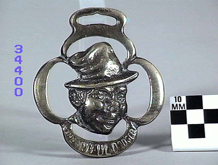 Horse brass: the artful dodger. Four leaf clover border. Type: cast brass. Comments: marked "the artful dodger". Date: circa 1912-1939.
