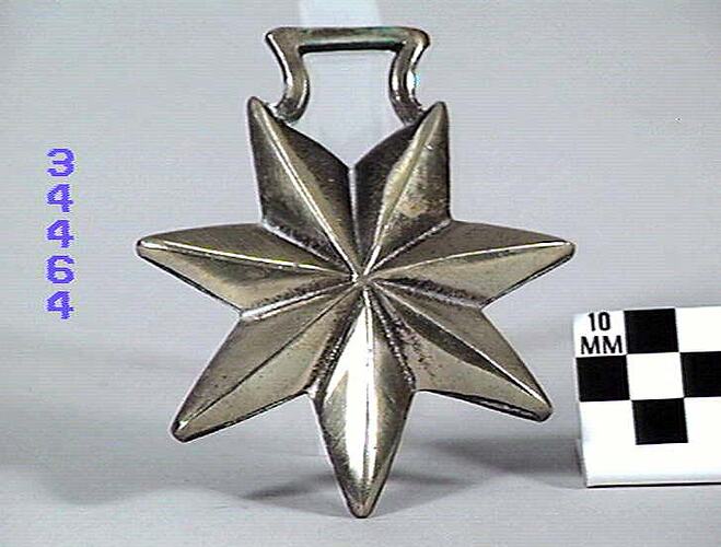 Horse brass: Star, seven pointed. No border. Type: cast brass. Date: 1825-1939.