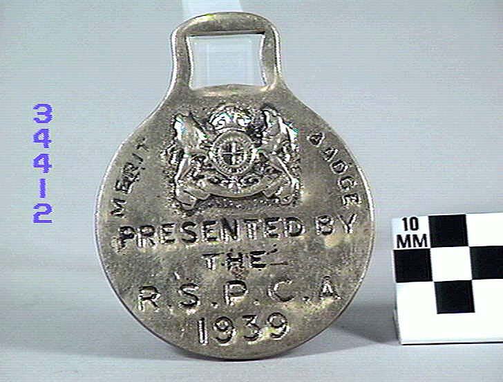 Marked "Merit badge presented by the R.S.P.C.A. 1939".
