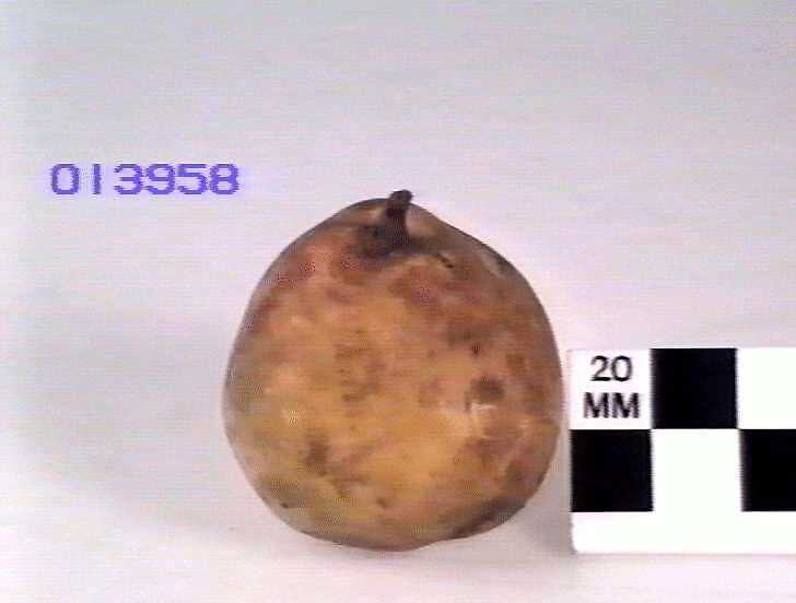 Wax model of a Beurre De Piquery pear, also know as Urbaniste, Beurre Drapiez, Louise Dupont, Louis D'Orleans, Virgalieu Musquee, and Coloma D'Automne.