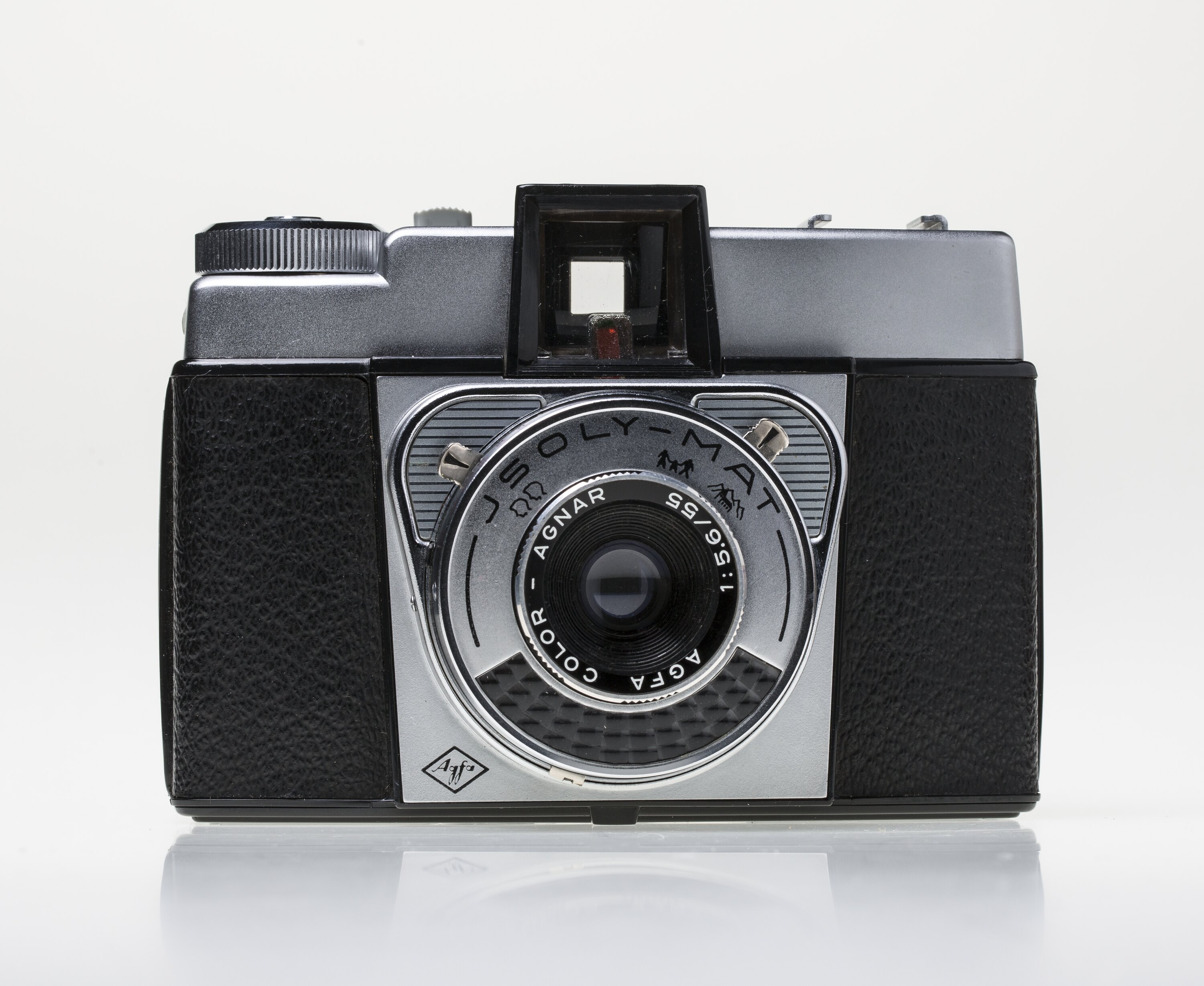 Printed on the lens plate: 'SOLY - MAT'. Printed around lens: 'AGNAR 1:5.6/55 AGFA COLOR'.