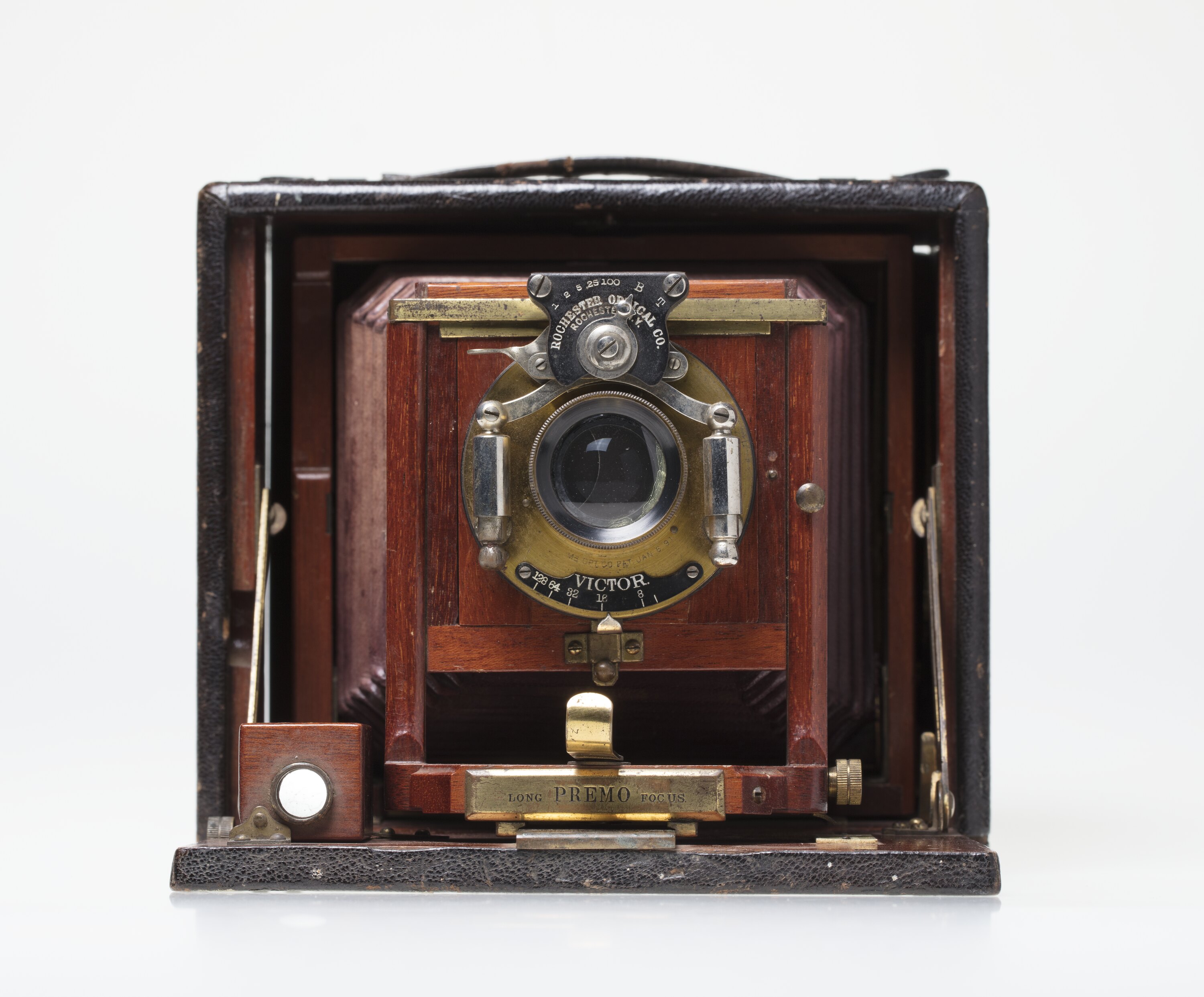 Rochester Optical Company was founded by W. F. Carlton in 1883 when he took over the holdings of William H. Walker, camera maker. The 'Premo' line of view cameras was the linchpin product of Rochester Optical Company. However the company went through an unsuccessful merger in 1899 resulting in it being taken over by Eastman Kodak. The Premo was so successful that Kodak continued marketing the camera.