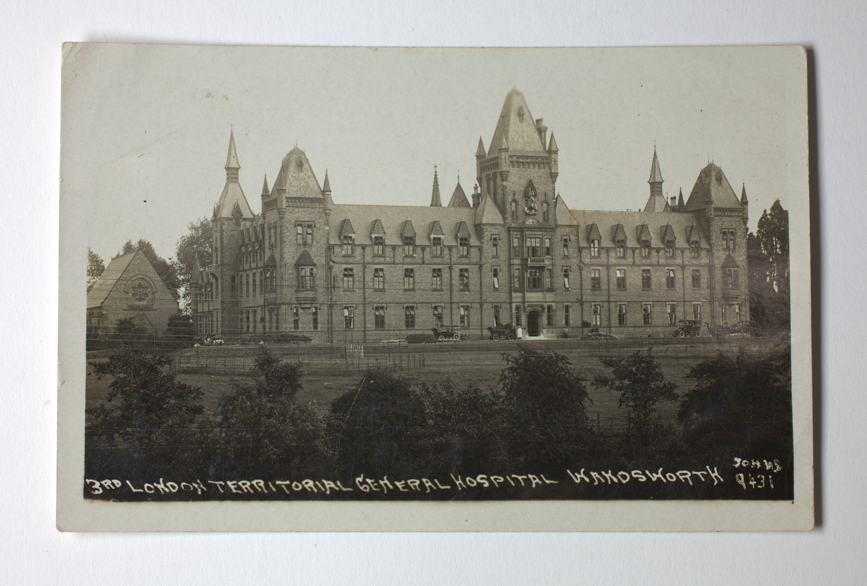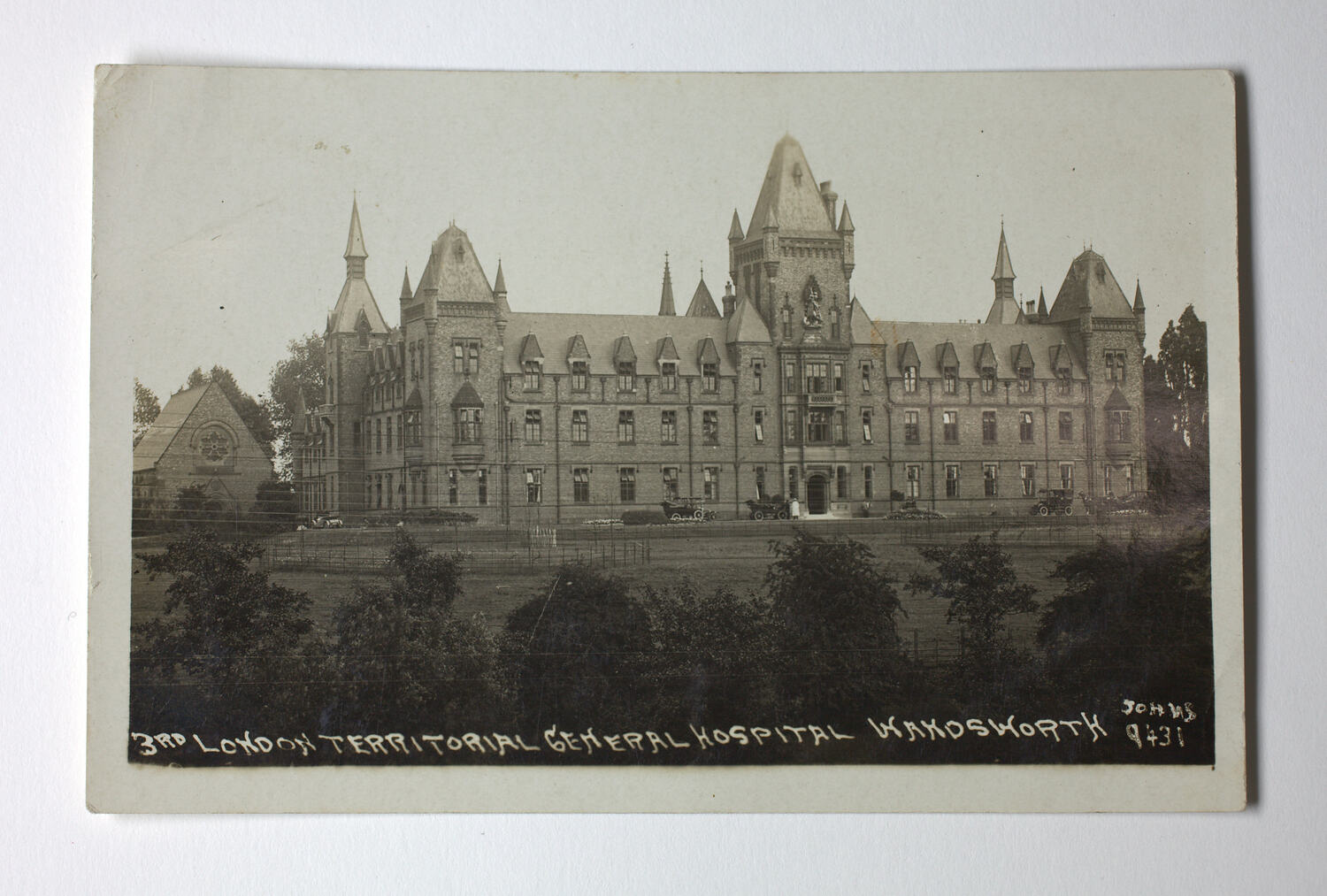 The 3rd London General Hospital, Wandsworth, was originally opened in 1859 as the 'loyal Victoria Patriotic Asylum,' an orphanage for the daughters of the men who served in the Crimean War. In August 1914 the girls were relocated to nearby homes and the building was renovated and extended for use as a hospital able to treat 1,800 patients at a time. After the war the building was returned to use as a school for girls until they were evacuated to Wales in 1939. Today the 3rd London General Hospital is the Grade II listed Royal Victoria Patriotic Building and contains twenty-nine apartments, several studios, workshops, a drama school and a French restaurant.