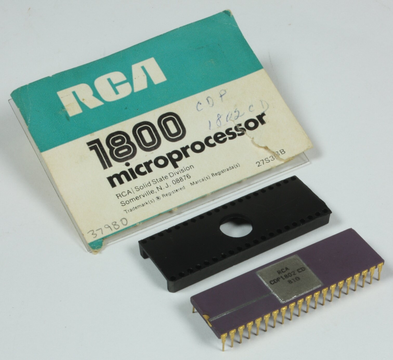 On device: RCA / CDP1802 CD / 810 On reverse side of shipping package: RCA / 1800 / microprocessor