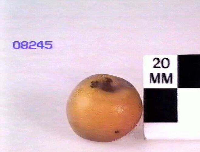 This wax model is based on a specimen grown and presented to the museum by the Horticultural Society of Victoria from their gardens at Burnley. The model was made in the museum. The model maker was not recorded. Duplicate of Reg Item 008246.