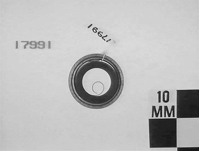 Watch spring coiled within brass ring, for short spring Waterbury Watch. Made by Waterbury Watch Co, Waterbury, Connecticut, circa 1890.