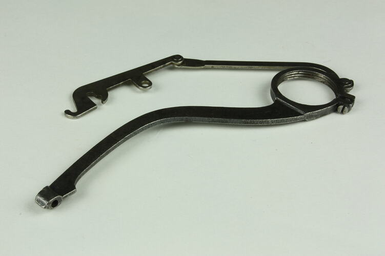 Typebar, probably from a Model 10 typewriter manufactured by the Smith Premier Typewriter Company of Syracuse, New York, U.S.A., in about 1912. The type slug normally fitted at the end of the typebar is missing in this case.