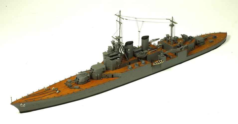 This model was built by E.J Krummeck and was purchased by the Museum in 1941. It is one of a large collection of British and Australian naval ship models built by Krummeck.