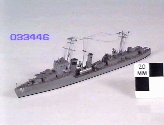 This model was built by E.J Krummeck and was purchased by the Museum in 1941. It is one of a large collection of British and Australian naval ship models built by Krummeck.