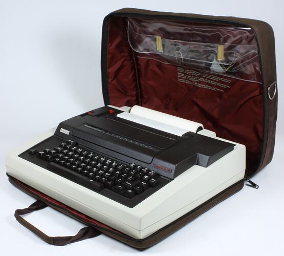 Keyboard/printer in zip up case. There is an input for an acoustic modem on one side. The printer contains a role of paper. Case contains mains lead, carrying strap, connector plug and twp plastic stoppers. Documents include: Listing: DECwrnt User Documentation Packageitter Correspondece; print-out; DECwritter Correspondent Installation Guide; DECwritter Correspondent Reference Card; DECwritter Correspondent Programme Reference Manual; digital LA12 CORRESPONDENT INSTALLATION REPORT; Installation Notes; DECwritter Correspondent Operator Guide Addendum; DECwritter Correspondent Operator Guide; ECO STATUS form; User Information Booklet