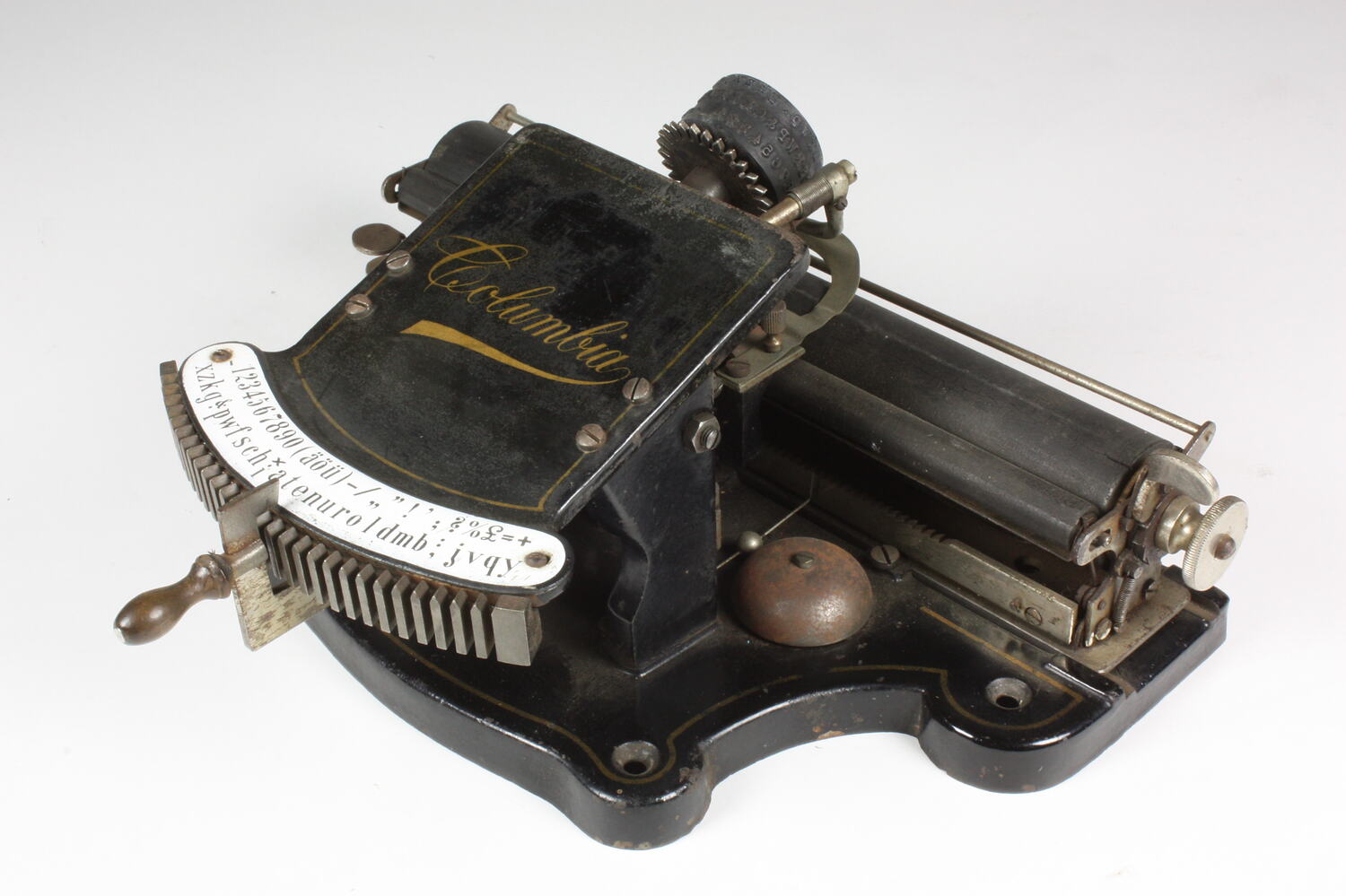 On cover over mechanism: 'Columbia' Serial number engraved on right hand end of platen carriage: '11343'