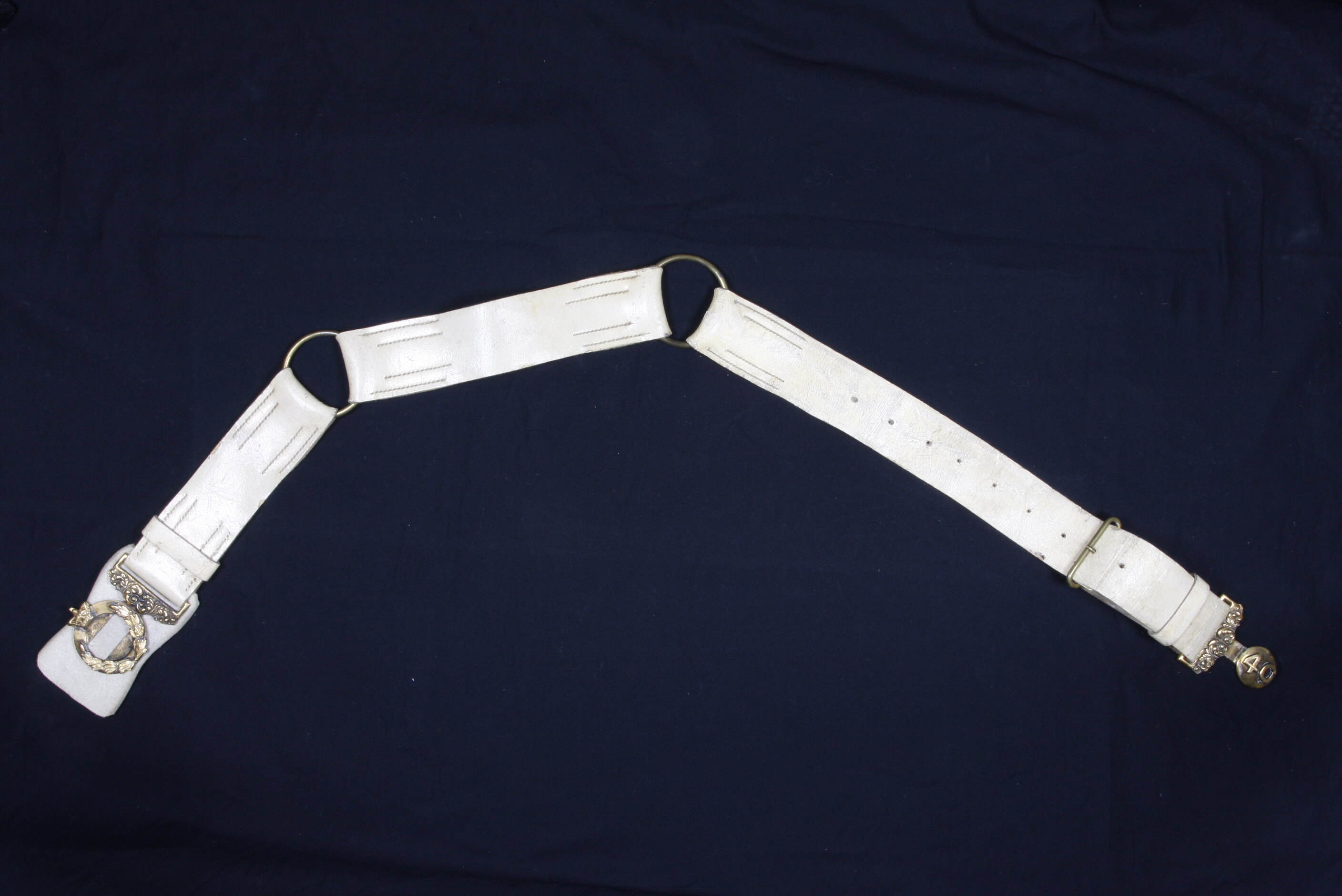 British regimental waist belt, 40th Regiment of Foot, circa 1855. Part of a uniform worn by Lieutenant. de N. Lucas, 40th Regiment of Foot (1832-1892).