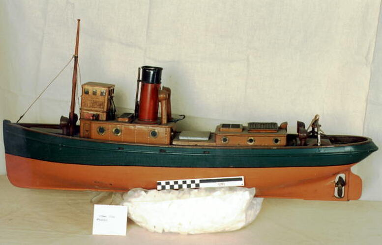 Working model of a steam tug. This model was built by W.Machin in 1928-29. It does not represent an actual vessel. The model was donated to the Museum in 1953