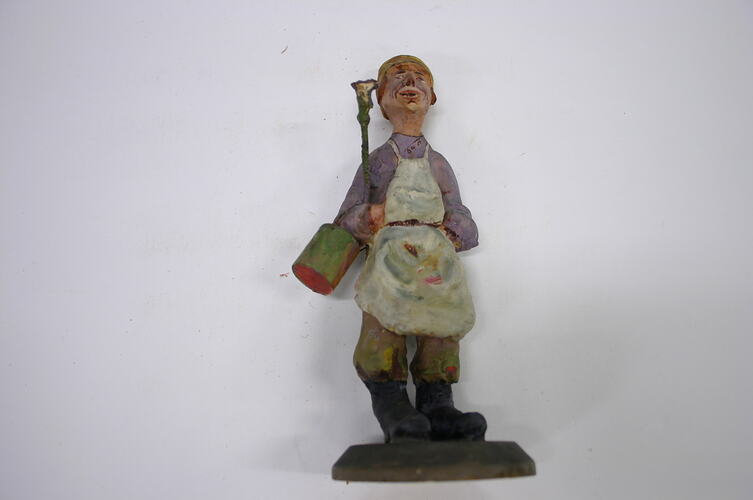 Wooden figure of a tradesman (painter) from Russia. The figure was gifted to the National Gallery in 1914 by Professor Netschaieffs, as part of a group of Russian folk art.