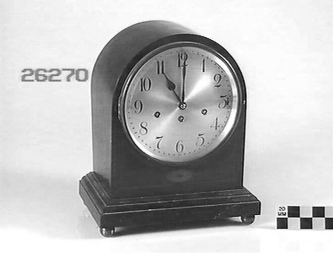 Mantel clock in wooden case with rounded top, made by Junghans, Wurttemberg, model A42, circa 1920.
