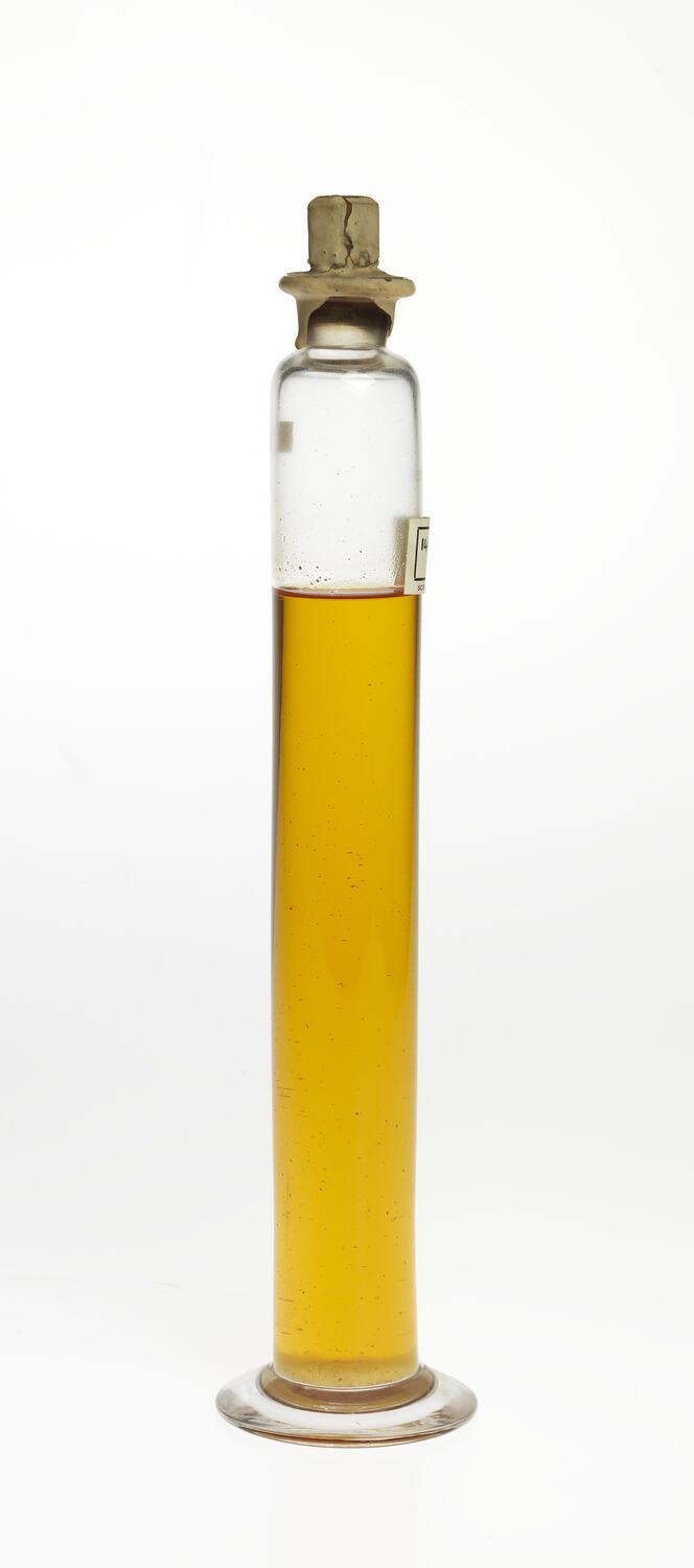 Crude oil sample of Eucalyptus globulus maidenii, also known as spotted blue gum, maiden's gum. Distilled from New South Wales material, pre 1922.